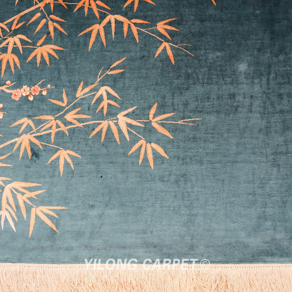 Chinese Art Decor Handmade Carpet Silk Blue Rug 8x10ft